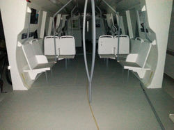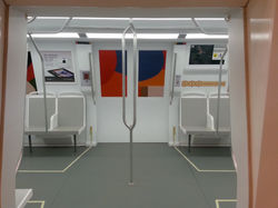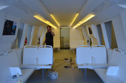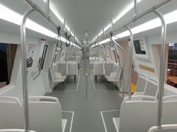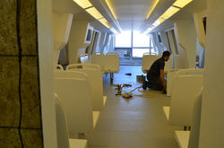 Maquette de proportion du train de San Francisco. 43 pieds de long avec mobilier et stantion. Finition intérieure avec auto-collant pour simuler les écrans et détails voulus, éclairage au DELS intégré dans les coves. Ajout du poste de pilotage. Construction de la structure, mobilier et accessoires.